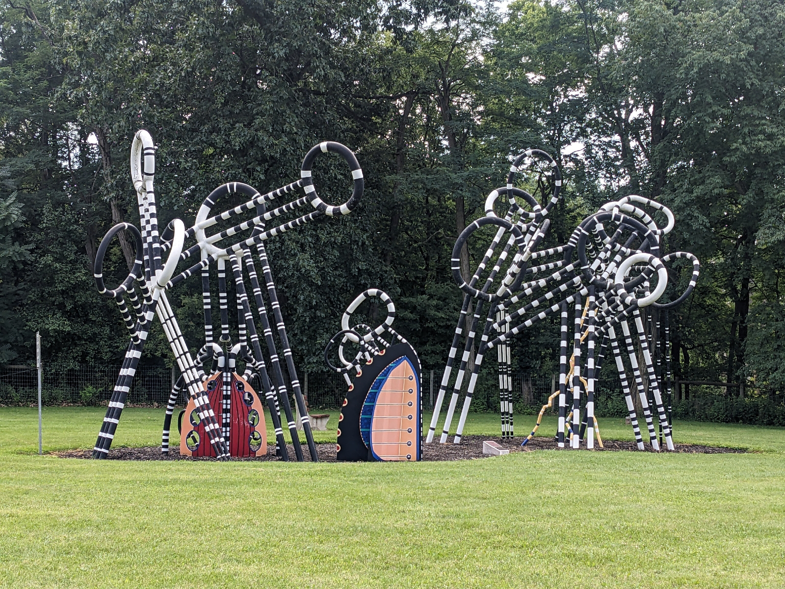 past the ariel foundation park outside mount vernon. i' m not sure what the foundation is, but they've taken an old industrial site and saved some of the 'ruins', created a covered event center in an old factory shell and a smaller eating venue, then built a series of landscape follies. adjacent is a large park and lake. really an amazing thing to stumble upon in the middle of a depressed ohio area.